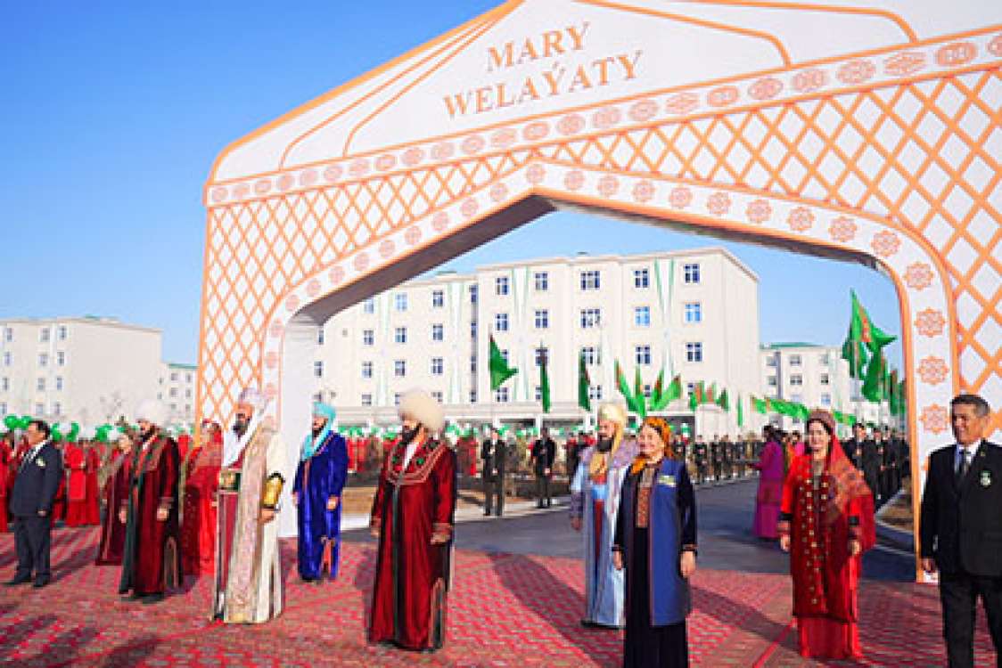 Hormatly Prezidentimiziň parasatly ýolbaşçylygynda amala aşyrylýan belent maksatly işler halkymyzyň ýaşaýyş - durmuş derejesiniň ýokarlanmagyna gönükdirilýär.Täze taryhy eýýamda şähergurluşyk maksatnamasynyň üstünlikli durmuşa geçirilmegi netijesinde Mary şäheriniň gözel künjeginde täze gurulan belent ýaşaýyş jaý toplumynyň emele gelmegi hem munuň aýdyň subutnamasydyr.Döwrebap ýaşaýyş jaý toplumy şäher keşbini düýpli özgertmek bilen şäher gözelligine özboluşly bezeg berdi.Her bir maşgala ojagyna rysgal-bereket,şatlyk paýlap ýetip gelýän Täze ýyl baýramçylygy mynasybetli Mary welaýatynyň Baýramhan köçesiniň ugrunda on alty sany, dört gatly alty ýüz kyrk öýli ýaşaýyş jaý toplumynyň açylyş dabarasy ajaýyp döwrümiziň kalplary joşa getirýän toý şatlyklaryna beslendi. Häzirki zaman talaplaryna laýyk gelýän bu ýaşaýyş jaý toplumyny Mary şäher häkimliginiň we paýçylaryň buýrmasyna laýyklykda”Erkin gurluşyk”hususy kärhanasynyň gurluşykçylary ýokary hil derejesinde bina etdiler.Açylyş dabarasynyň başlangyjy täze gurylan ýaşaýyş jaý toplumynyň girelgesinden başlandy.Bu ýere ýygnanan welaýatyň bagtyýar ýaşaýjylary,ýaşuly nesliň wekilleri we mährem eneler toý ýörişi bilen täze döwrebap ýaşaýyş jaýlaryny synlap,toplumyň merkezinde bina edilen çagalar bagynyň öňündäki meýdança geldiler.Dabara meýdançasynda olary döwrümiziň saýrak dilli körpeleri we çagalary özleriniň baýramçylyk çykyşlary bilen garşyladylar.Bagtly döwrüň bagtyýar nesilleriniň Hormatly Prezidendimiziň çagalar barada edýän aladalaryny,bagtyýar çagalygy wasp edýän we ýüreklerinden joşup çykýan şadyýan tanslary hem aýdymlary toý mähellesiniň şatlygyny has-da artdyryp,göwünleri joşdurdy.Welaýatyň skripkaçylar toparynyň ussatlyk bilen ýerine ýetiren hoş owazly mukamlary hem olara ruhy lezzet paýlady. Çeperçilik mekdeplerinde bilim alýan suratkeşleriň ajaýyp zamanamyzyň waspyny ýetirýän surat eserleri bolsa myhmanlarda uly täsir galdyrdy.Bu ýerde guralan muzeý gymmatlyklarynyň,haly we haly önümleriniň,heýkeltaraşlyk sungatynyň we milli şaý - seplerimiziň sergileri hem halkymyzyň milli we medeni mirasymyza uly sarpa goýulýandygyny aýdyňlygy bilen görkezdi.Birleşen dutarçylar toparynyň belent perdelerde çalan sazlary we ýerine ýetiren aýdymlary toý şowhuny bilen sazlaşyp, uzaklara ýaň saldy. Eli çeper gelin – gyzlaryň ümä üýşüp, ene mamalarymyzdan miras galan el hünärlerini we tikin işlerini ussatlyk bilen ýerine ýetirýän görnüşleri bu dabara aýratyn öwüşgin çaýdy. Türkmen Halkynyň Milli Lideri Gahryman Arkadagymyzyň beýik başlangyçlaryny üstünlikli dowam etdirýän Hormatly Prezidentimiz Arkadagly Gahryman Serdarymyzyň halkymyzyň hal - ýagdaýyny gowulandyrmak, ilatymyzy ýaşaýyş jaýlary bilen üpjün etmek barada amala aşyrýan döwlet ähmiýetli işlerine begenip buýsanýan bagtyýar raýatlar soňra täze ýaşaýyş jaý toplumynyň açylyş dabarasyna gatnaşdylar. Welaýatyň bagtyýar ýaşaýjylarynyň, Türkmenistanyň mejlisiniň deputatlarynyň, welaýat Halk maslahatynyň agzalarynyň, jemgyýetçilik guramalarynyň , edara kärhanalaryň , bilim, saglygy goraýyş, medeniýet ulgamlarynyň işgärleriniň , täze ýaşaýyş jaýlaryň eýeleriniň, gurluşykçylaryň , ýaşuly nesliň wekilleriniň , mährem eneleriň we bagtyýar ýaşlaryň gatnaşmagynda geçirlen bu dabara ýokary ruhubelentlige beslendi. Dabaranyň geçýän ýerinde guralan medeni çäre giň gerimde ýaýbaňlandy. Welaýatyň medeniýet we sungat işgärleri, estrada aýdymçylary , birleşen tans toparlary bu dabarany özleriniň täsirli çykyşlary bilen bezediler.Kalplary joşa getirýän aýdym- sazlarda Gahryman Arkadagymyzyň we Arkadagly Gahryman Serdarymyzyň il ýurt bähbitli dünýä nusgalyk işleri , ösüşleriň batly gadamlary bilen öňe barýan eziz diýarymyz , ýetip gelýän täze ýyl baýramy joşgunly wasp edildi . Açylyş dabarasynda çykyş eden adamlar täze jaýyň eýeleri bolan bagtyýar raýatlary gutlamak bilen olara täze ýyl arzuwlaryny aýtdylar. Halkymyzy döwrebap ýaşaýyş jaýlary bilen üpjün etmekde alyp barýan işleri üçin Gahryman Arkadagymyza hem –de Hormatly Prezidentimiz Arkadagly Gahryman Serdarymyza alkyş sözlerini beýan etdiler. Dabarada täze ýaşaýyş jaýyny almak bagtyna eýe bolan bagtyýar raýatlara täze jaýlaryň açarlary dabaraly ýagdaýda gowşuryldy. Paýly gurluşyk esasynda bina edilen jaý toplumynyň gurluşygyna gatnaşan gurluşykçylara Hormatly Prezidentimiziň adyndan gymmat bahaly sowgatlaryň gowşurylmagy dabaranyň şatlykly pursatlarynyň biri boldy . Soňra ähli amatlyklary bolan ýaşaýyş jaý toplumynyň açylyş dabarasy türkmen halkymyzyň täze öwüşginli milli toý däp –dessurlary bilen utgaşdy. Täze ýaşaýyş jaýyna täze ýyl baýramynyň bosagasynda göçüp gelen döwletli maşgalanyň bagtyýar ojagynda tutulan durmuş toýunyň dabarasy uzaklara ýaň saldy. Öňüni bedew atlara atlanan merdana ýigitleriň çekmegi bilen toý gelnalyjysynyň täze jaýyň öňüne gelmegi dabaranyň şatlygyny hasam artdyrdy. Bu ýerde toý toýlaýan bagtyýar ýaşlar aýdym –sazlaryň hoş owazlarynyň astynda üzärlik tütetmek , süýji nogul seçmek , toý haladyny ýapmak ýaly asylly däp –dessurlary bilen garşylandy. Hatar gurlan üsti basdyrmaly tapçanlar, olaryň üstündäki naz-nygmatly saçaklar toý bezegine öwrülip, toý pişmeleri bişirilip, gazanlarda milli tagamlar taýýarlanyp, myhmanlara dürli milli tagamlar hödür kerem edildi. Täze ýaşaýyş jaýlaryndan paýly bolan bagtyýar raýatlar bu günki şatlykly günde jaý toýlaryny hem uludan tutdylar. Toý dabaralarynyň çar ýany welaýatyň sport ulgamynyň t