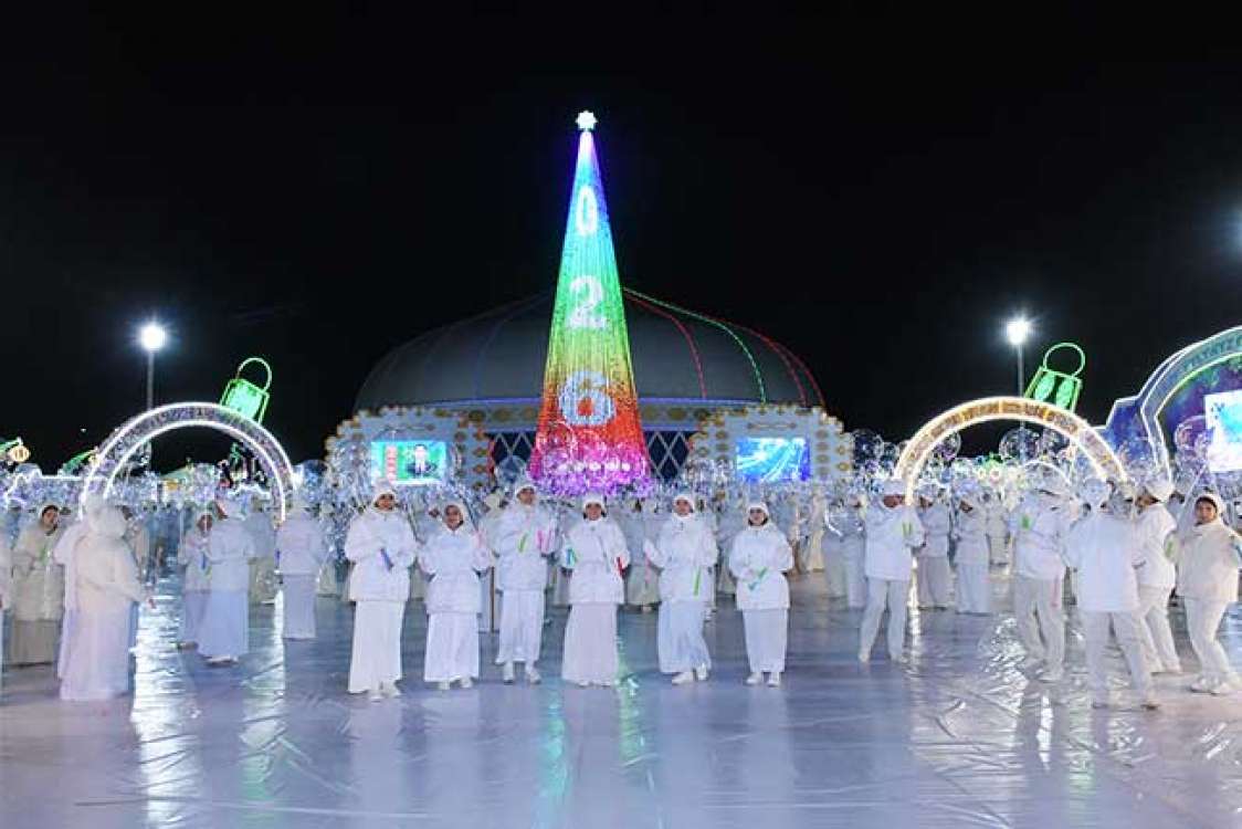“Türkmeniň Ak öýi” binasynyň meýdançasynda welaýatymyzyň medeniýet we sungat işgärleriniň, bagtyýar çagalaryň ýerine ýetirmeginde aýdym-sazly dabaralara giň orun berildi. Ondaky ýaňlanan şirin owazlardyr ajaýyp tanslar baýramçylyk şowhunyny has-da artdyrdy. Çagajyklar bezemen arçanyň daşynda el-ele berip, aýdym aýdyp, şatlandylar. Garpamykdyr Aýazbaba çagalaryň şowhunyna goşulyp, arçanyň daşynda aýlandylar. Şatlyk-şowhuna beslenen pursatlarda Baş arçanyň yşyklary ýakyldy. Aýdym-sazlara utgaşyp gidýän owadan yşyklar baýramçylyk şowhunyny has-da artdyrdy.