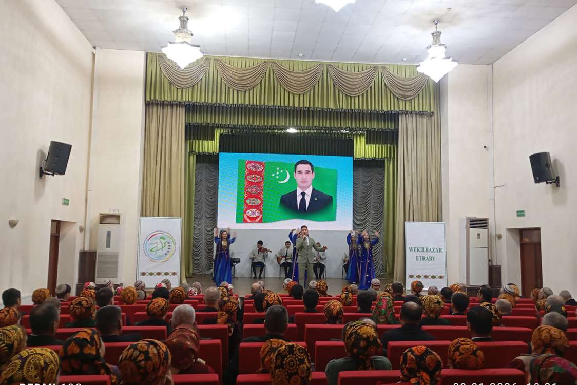 Подобно тому, как в нашей стране стало благородной традицией давать название каждому году, новый 2026 год также стал годом «Независимого, Вечно Нейтрального Туркменистана – Родины Храброго и Храброго Коня-Мурада». Празднования были масштабными, и одно из таких торжеств состоялось в Доме культуры Векильбазарского района, организованном совместно администрацией Векильбазарского района, комитетом Демократической партии Туркменистана Векильбазарского района и женским отделом Векильбазарского района. В этом музыкальном празднике, посвященном славному девизу года, приняли участие уважаемые старейшины, седовласые матери, сотрудники и активные члены комитета Демократической партии Туркменистана Векильбазарского района, а также работники здравоохранения, культуры и образования района. Выступавшие здесь докладчики произнесли вдохновляющие речи о значении славного девиза и символа года, о великой роли туркменских лошадей в многовековой истории нашего народа, а также об их славе и популярности во всем мире. Продолжение конференции сопровождалось музыкой, во время которой были исполнены песни, посвященные славному девизу года, воспевающие нашу мирную, процветающую Родину и наше чудесное время. Участники церемонии выразили свои поздравления нашему Национальному Вождю, Герою Аркадагу, и нашему Почетному Президенту, Аркадаглы Герою Сердару , которые неустанно трудятся во имя светлого будущего нашего народа.