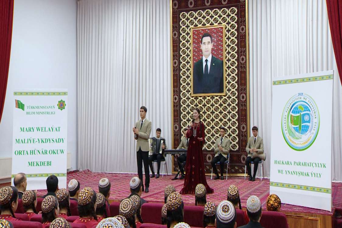 Состоялась торжественная конференция, посвященная Году мира и доверия между народами и 30-летию нашего постоянного нейтралитета, организованная совместно Марыйским велаятским и Байрамалийским городскими советами Молодежной организации Туркменистана имени Махтумкули и Марыйским велаятским финансово-экономическим средним профессиональным училищем. В конференции под названием «Наша дорогая Родина полна развития» приняли участие преподаватели и учащиеся Марыйского велаятского финансово-экономического среднего профессионального училища. Главной темой этой праздничной конференции стало развитие нашей страны под руководством нашего уважаемого Президента, значение политики Нейтралитета нашего государства и великие достижения нашей вечно нейтральной страны. На праздничной конференции выступавшие выразили свою благодарность Общенациональному лидеру туркменского народа – героическому Аркадагу и нашему уважаемому Президенту – героическому Сердару, ведущим нашу страну к новым вершинам развития. На церемонии с большим воодушевлением выступили увлечённые искусством учащиеся, которые с большим воодушевлением исполнили свои мелодичные выступления. В своих выступлениях они выразили безграничную гордость за нашу Независимую и Вечно Нейтральную Родину, подвиги Героя Аркадага и Героя Сердара, совершаемые на благо народа и страны. Тоймурат ГУРБАНОВ.