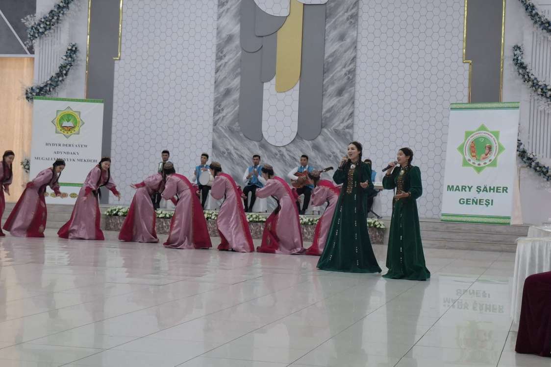 Baýramçylyk dabarasynda Hydyr Derýaýew adyndaky mugallymçylyk mekdebiniň talyp ýaşlarynyň ýerine ýetirmeginde aýdym-sazly çykyşlar ýerine ýetirildi. Aýdymlarda ata Watanymyzyň beýik ösüşleriniň, Gahryman Arkadagymyzyň, Arkadagly Gahryman Serdarymyzyň rowaçly işleriniň waspy edildi. Şeýle-de, dabarada işjeň agzalaryň hem-de talyp ýaşlaryň ýürek buýsançlary belentden ýaňlandy.