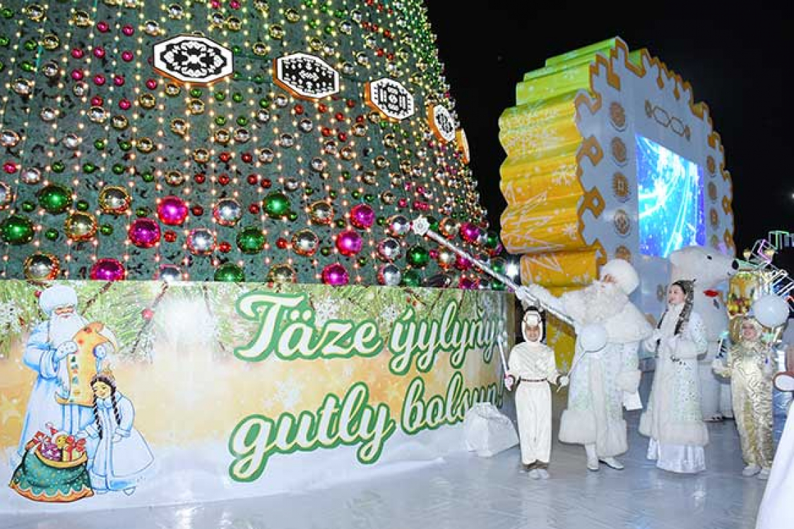 “Türkmeniň Ak öýi” binasynyň meýdançasynda welaýatymyzyň medeniýet we sungat işgärleriniň, bagtyýar çagalaryň ýerine ýetirmeginde aýdym-sazly dabaralara giň orun berildi. Ondaky ýaňlanan şirin owazlardyr ajaýyp tanslar baýramçylyk şowhunyny has-da artdyrdy. Çagajyklar bezemen arçanyň daşynda el-ele berip, aýdym aýdyp, şatlandylar. Garpamykdyr Aýazbaba çagalaryň şowhunyna goşulyp, arçanyň daşynda aýlandylar. Şatlyk-şowhuna beslenen pursatlarda Baş arçanyň yşyklary ýakyldy. Aýdym-sazlara utgaşyp gidýän owadan yşyklar baýramçylyk şowhunyny has-da artdyrdy.
